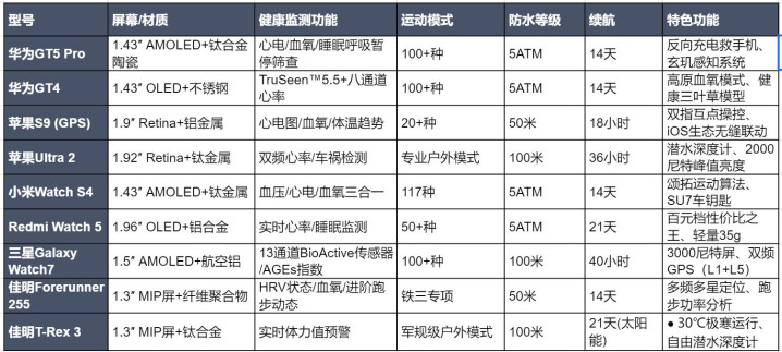 ● 商务健康全能 :华为GT5 Pro → 反向充电+医疗级监测